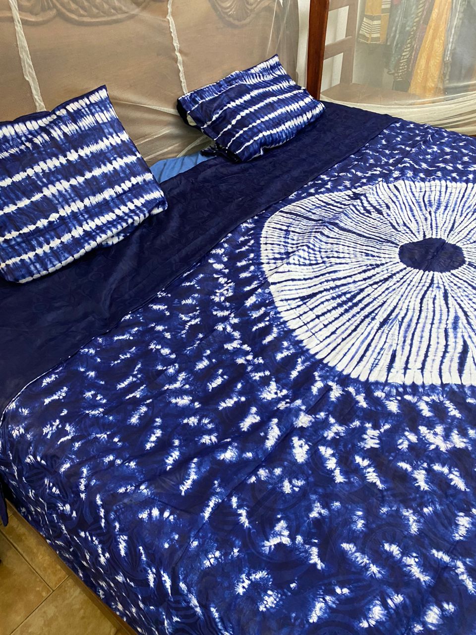 Drap ou dessus de lit en bazin (tissu damassé 100% coton), teint et cousu à la main, finitions soignées.